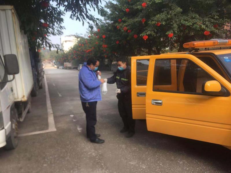 由于涉及到141名員工的物資發放,路線涉及50多個小區,人手問題,成了擺在面前的一大難題。正當在為誰去派送發愁時,客服部的黨員、團員同志主動“請戰”,立即組建起了十名員工的物資派發工作小組。隨后立刻開始了物資派發,過程當中,各個工作小組嚴格按照“安全防護全得有、嚴禁交談與逗留”的要求,在2個小時內為公司一線需要物資的員工送去了防護用品,共計50瓶消毒液、126瓶酒精,252個口罩。